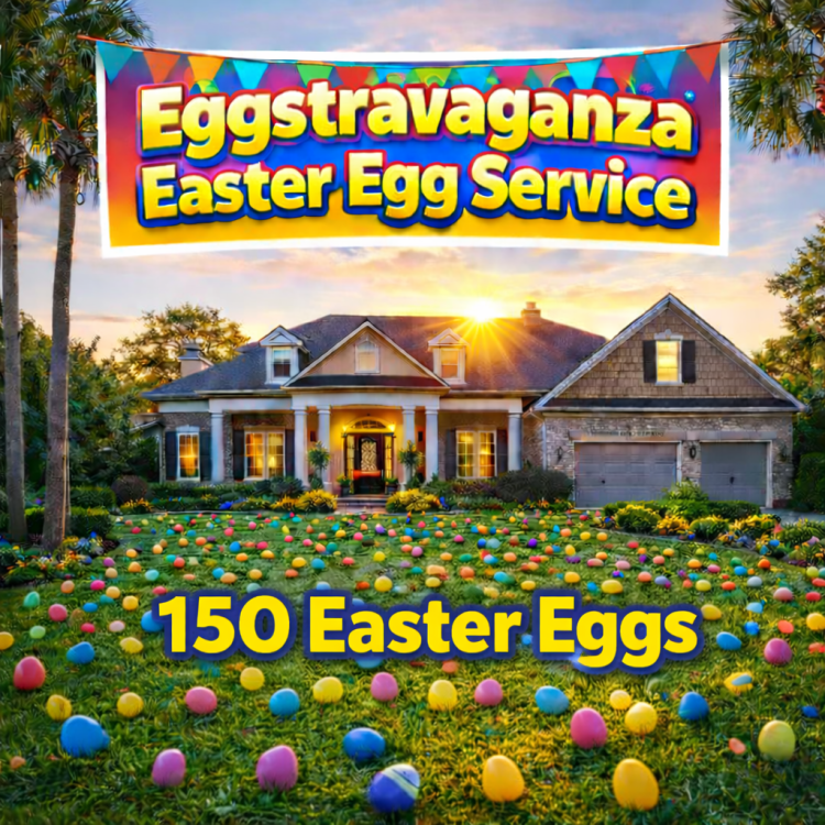 Make Easter morning truly magical—without the late-night setup or early-morning stress. Our Easter Egg Hiding Service brings the fun straight to your home! While your family sleeps, our team quietly arrives early Easter morning and hides 150 prefilled Easter eggs throughout your lawn or yard, ready for an unforgettable egg hunt when the kids wake up.
